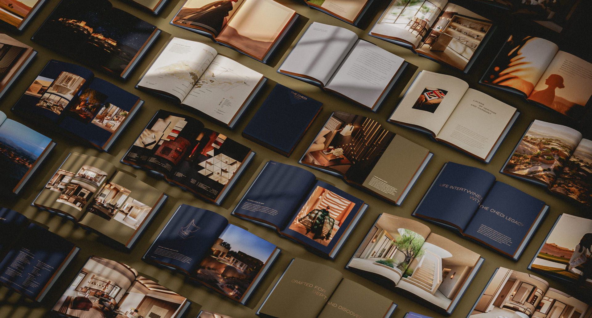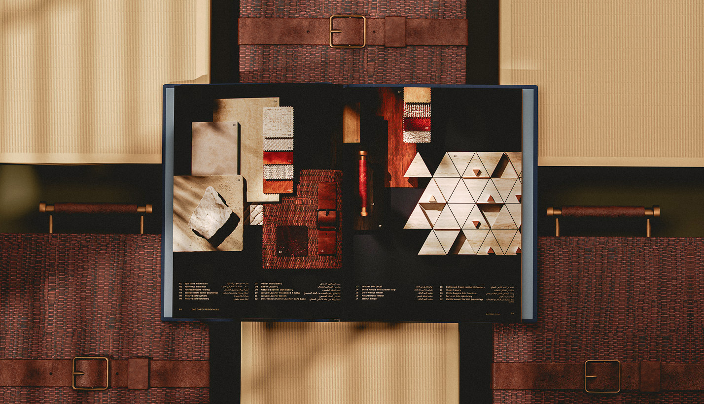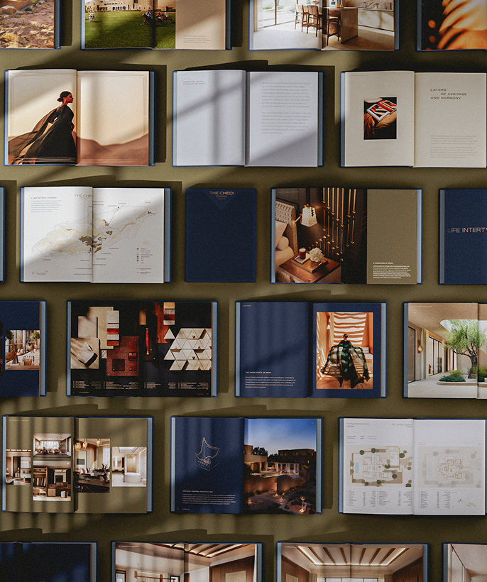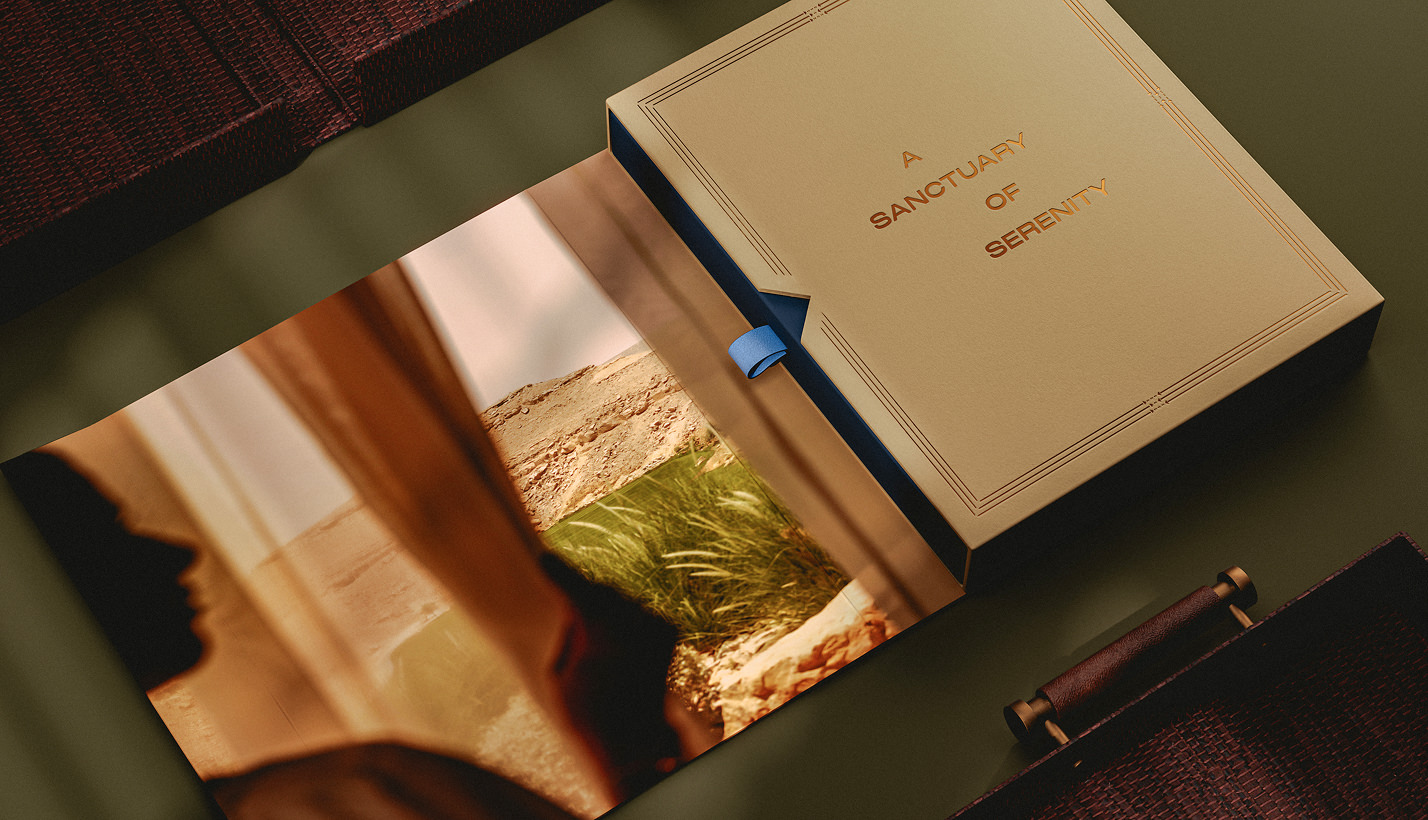 Inspired by the homes’ handcrafted interiors, the book is encased in materials drawn from bespoke furnishings, creating a seamless connection to the spaces themselves. An outer case clad in textured leather introduces a layered unboxing experience, guiding the reader through the brand narrative. Within, a clamshell sleeve opens to reveal a tray presenting the book like a treasured keepsake—transforming it from a visual gallery into an object embedded in the story of the homes it represents.